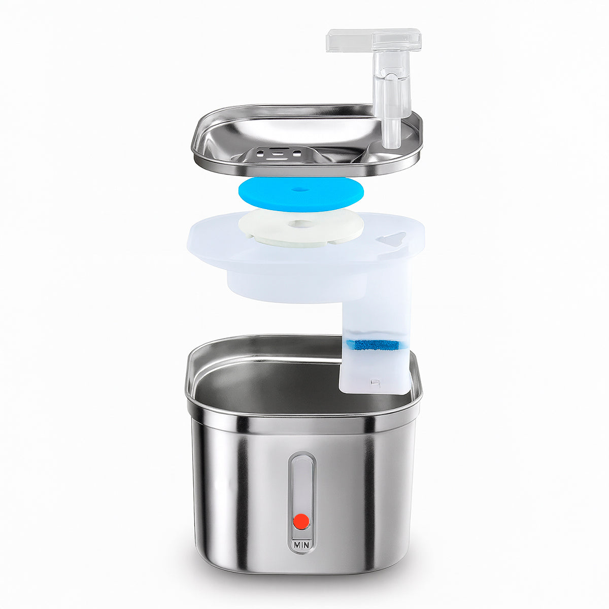 Triple-stage filtration removes hair, dirt, food particles, and odors while the medical-grade stainless steel prevents bacteria growth that plastic fountains can't stop. Your cat gets top-quality water that stays pure for days, not hours.